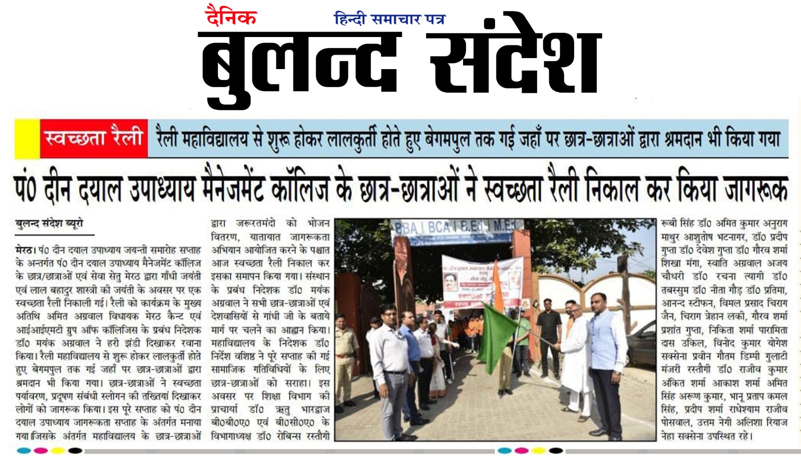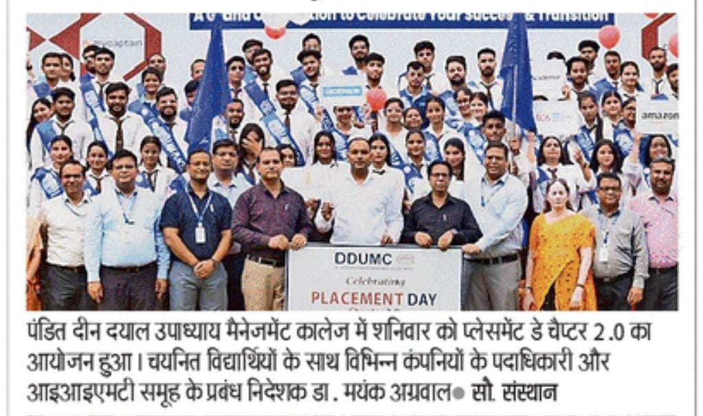 Pt. Deen Dayal Upadhyay Management College (Pt. DDUMC), Meerut, is a premier institute known for its academic excellence and value-based education under the aegis of the Pt. DDUMC. With state-of-the-art infrastructure and lush greenery, Pt. DDUMC is located at 17 Mall Road, the safest cantonment area in Meerut. The college has created a niche in the hearts of people by providing the best education that prepares students for future challenges.